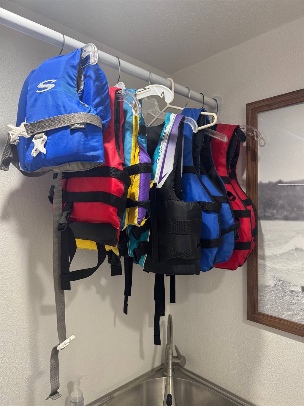 While a limited number of life jackets and beach towels are provided, we recommend bringing extras to ensure everyone in your group has what they need. Additional paper goods and ice are also helpful to have on hand. There is a large grocery store in Marble Falls, 15 minutes away, with delivery service.